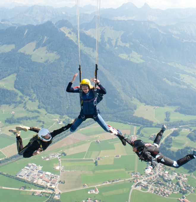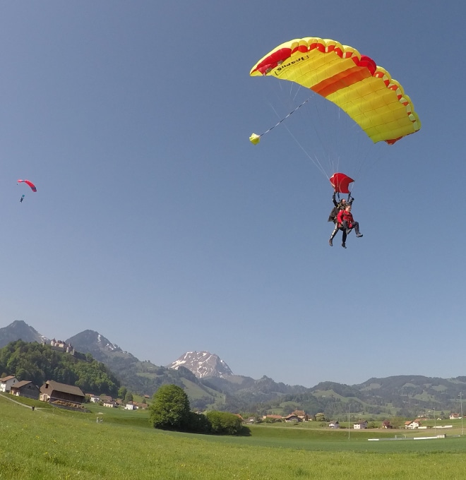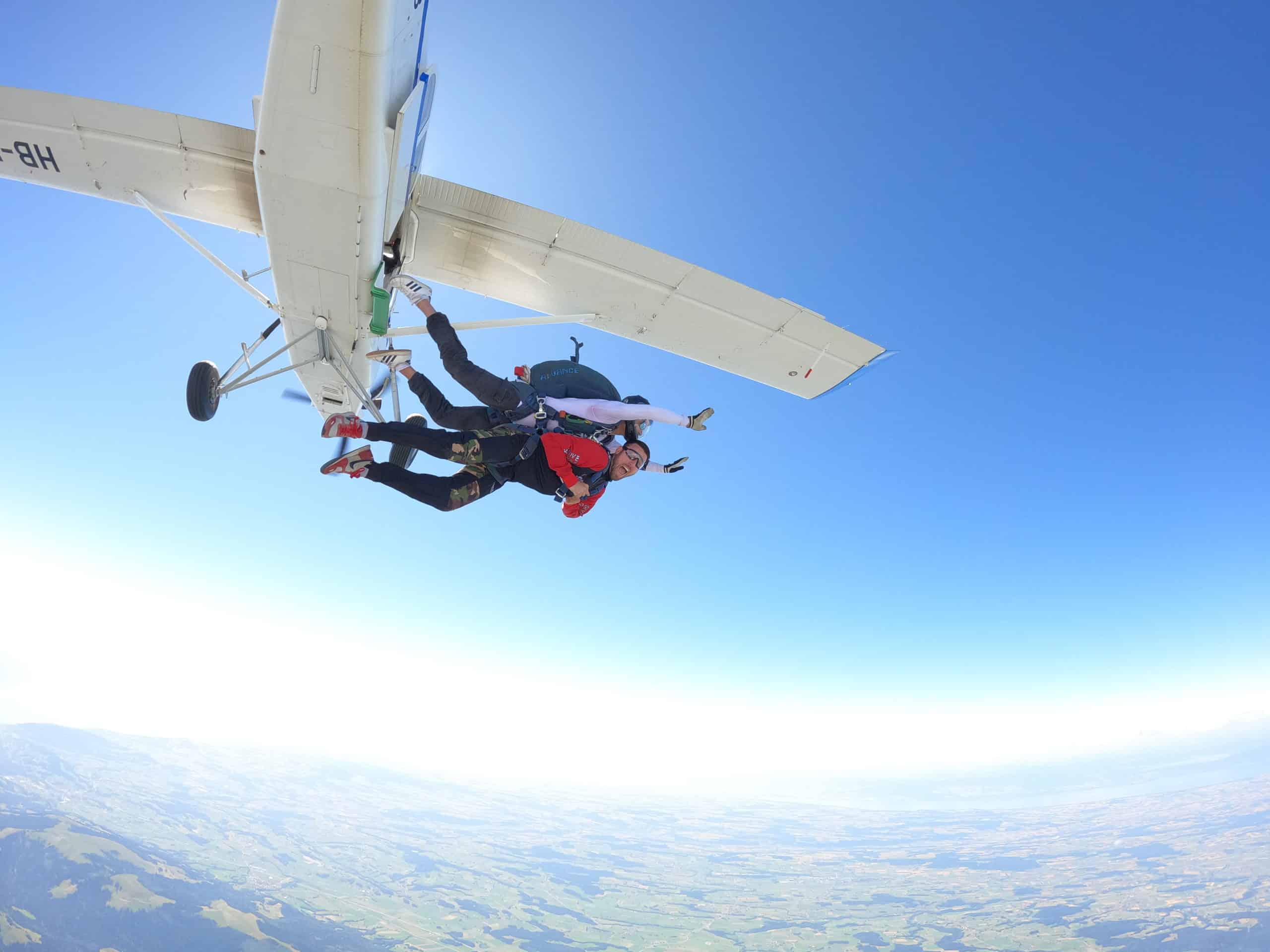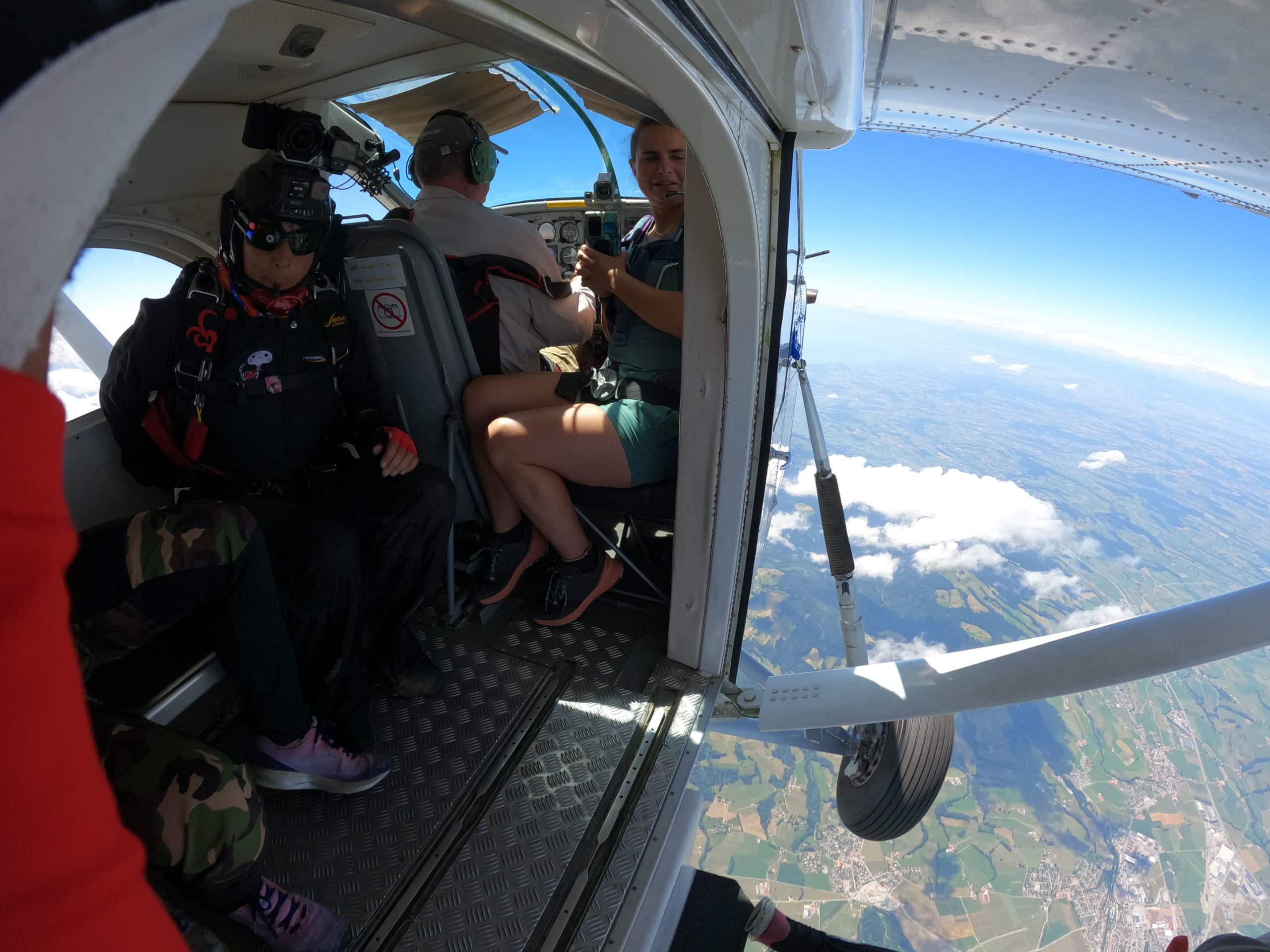 Notre avion Suisse, le Pilatus Porter PC6 ne peut embarquer qu'un maximum de 10 parachutistes, nous pouvons donc emporter jusqu'à 4 tandems en même temps. Si vous êtes plus que 4, il faudra faire plusieurs groupes.