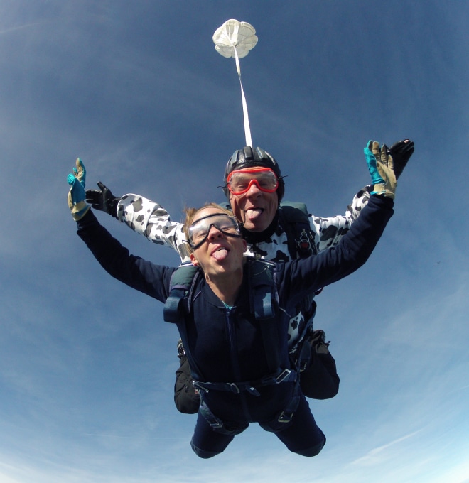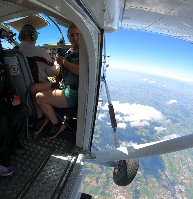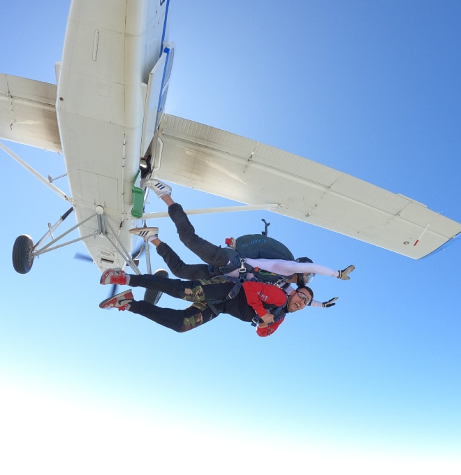 Soyez aux premières loges, assis et attaché sur le siège co-pilote avec un parachute sur le dos, pour voir les parachutistes sauter à 4000 mètres d’altitude puis redescendre avec le pilote. (vol d’environ 20 minutes)